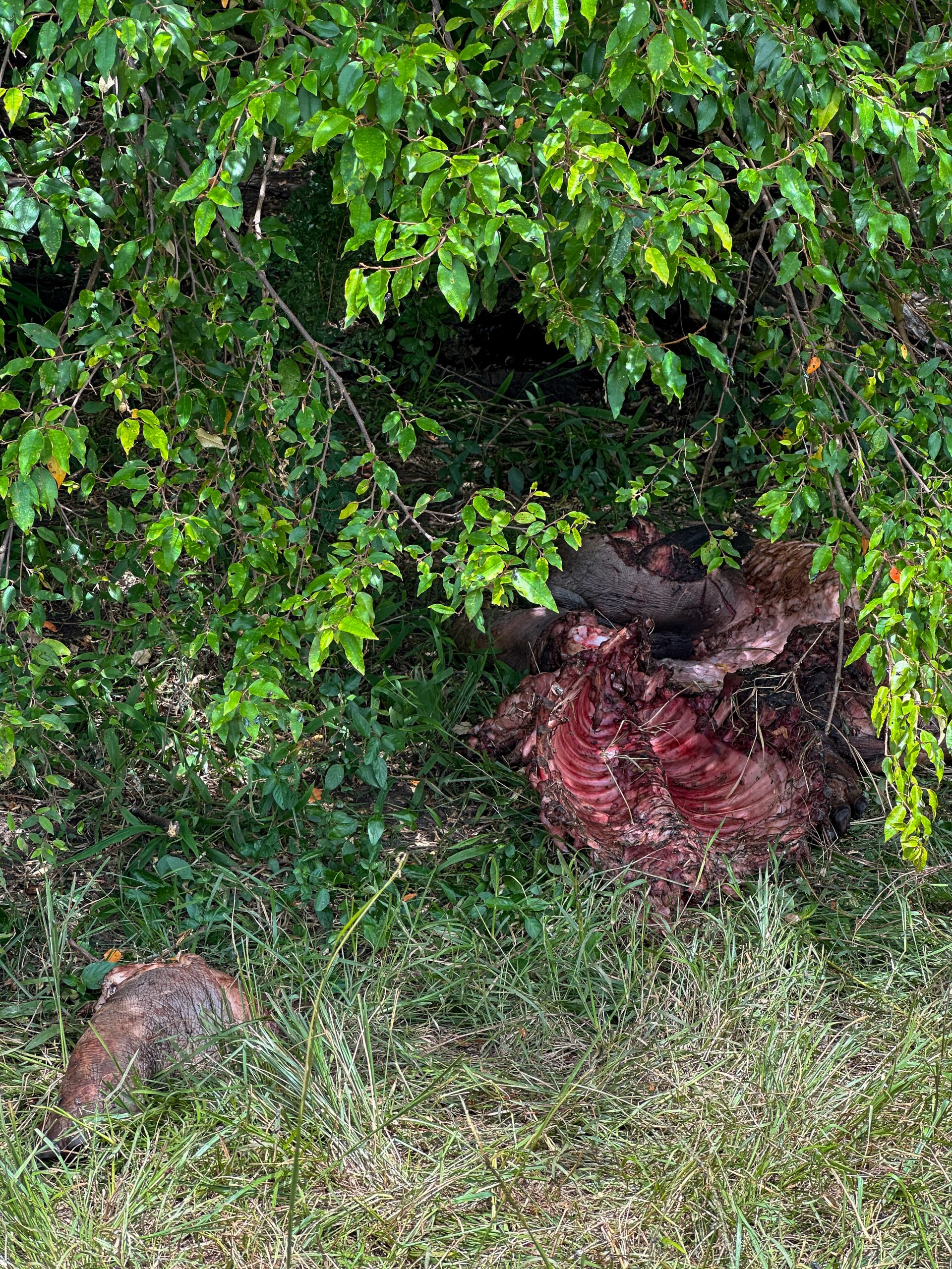 Evidence at the scene pointed to a violent encounter with a hippo. Remains of a hippo were found in Kiminati’s stomach, indicating a recent kill or feeding event. Nearby, a hippo carcass lay close to his coalition partner, Oloiborkwe, who was resting a few metres away with a full belly.
